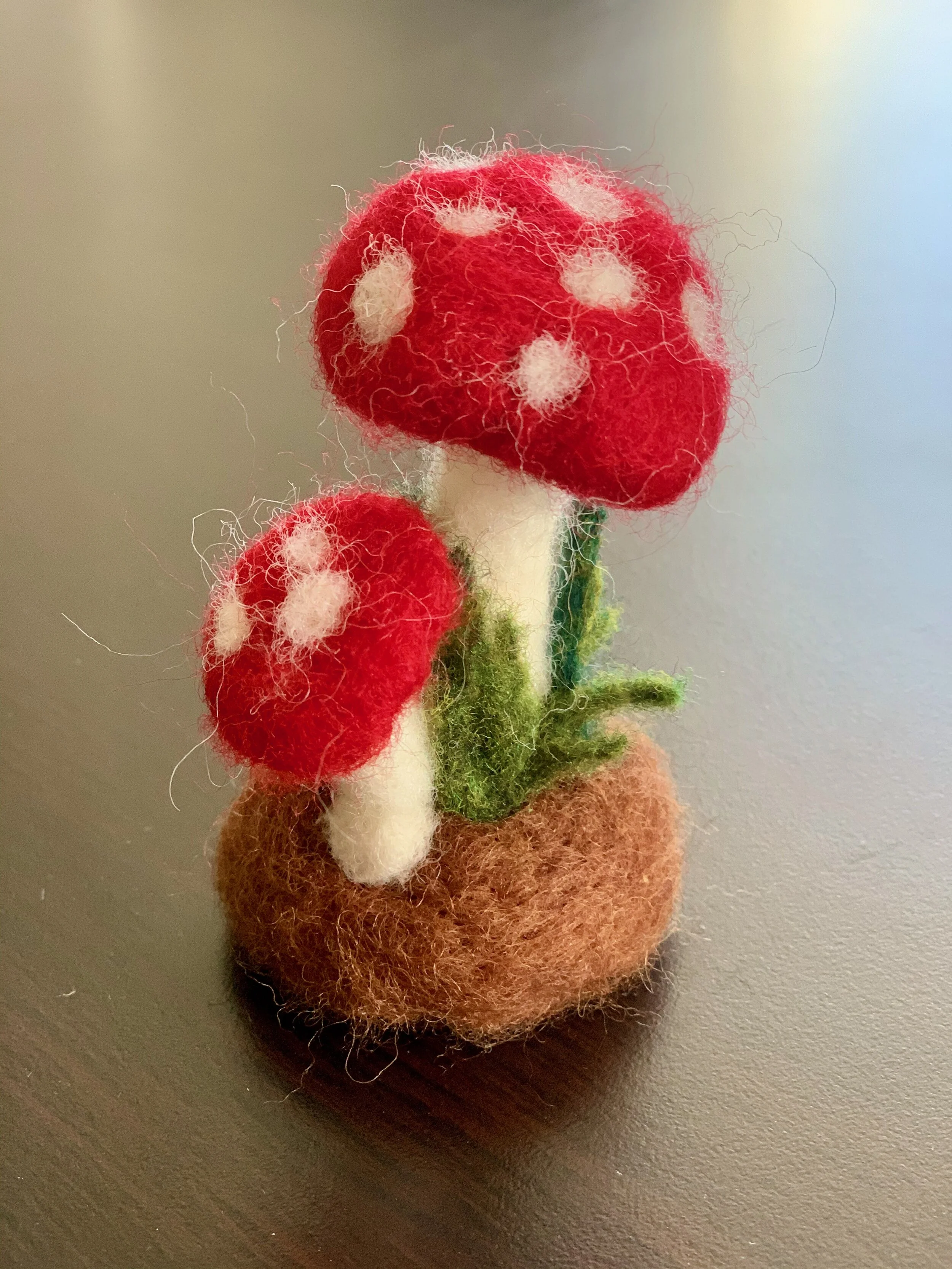 In this beginner 3 hour class you will turn a handful of fluff into a felted Mushroom. Learn about the materials and tools you need to get started, the basics of needle felting, and turn your wool into a finished project.